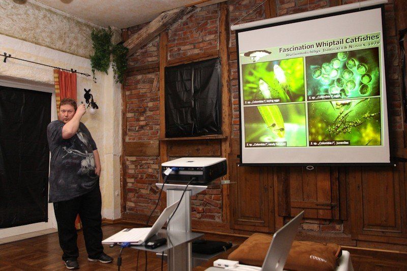Erik Schiller wird meist mit Corydoras in Verbindung gebracht. Erik pflegt jedoch auch noch ein paar andere südamerikanische Welse. „Meine südamerikanischen Welssonderlinge“ so der Titel seines Vortrages. Hier ging es um den Schmerlenwelse Ituglanis cf. amazonicus, Ituglanis cf. metae, die Trugdornwelse Trachelyichthys sp. “Jutai”, Tatia dunni, Tatia gyrina, Tatia galaxias, Tatia musaica, Centromochlus perugiae, Centromochlus schultzi, Centromochlus reticulatus, Cetopsis orinoco, Trachelyopterus galeatus, Trachelyopterichthys taeniatus.