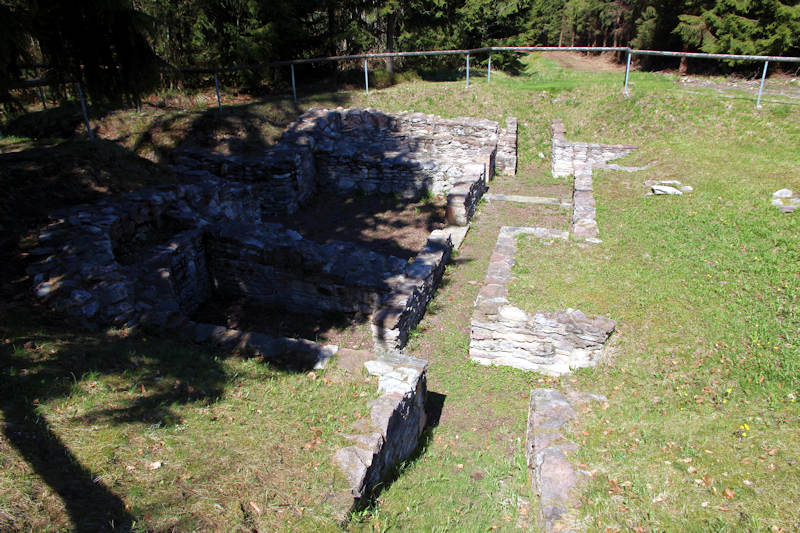 Etwas anderthalb Kilometer weiter ist dann der Kickelhahn. Hier bietet sich ein Blick in das Jagdhaus (alias Goethe-Häuschen) an. Unweit davon befindet sich eine nachgebaute Jagdanlage und die Ausgrabung der Grundmauern einer solchen. Nach diesem kleinen Umweg ist man dann schnell am Kickelhahn mit Aussichtsturm und Gaststätte.