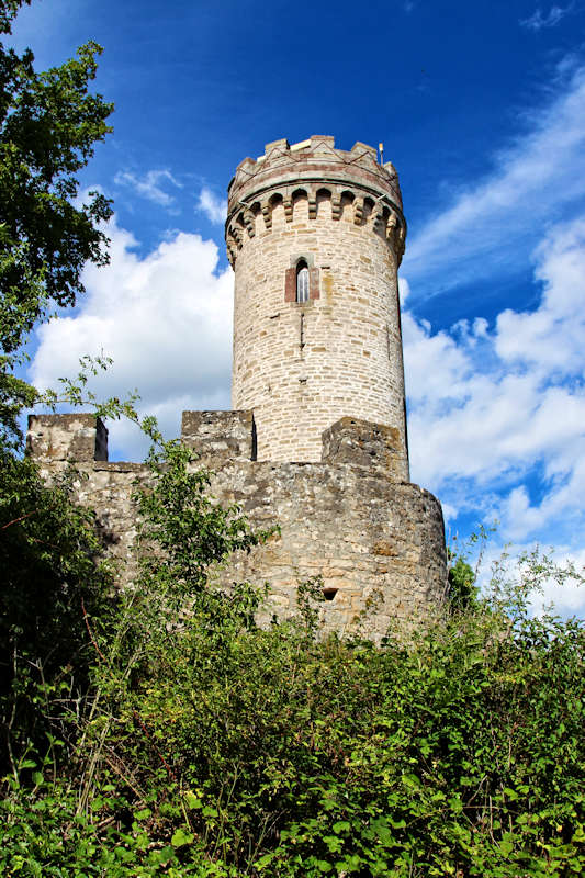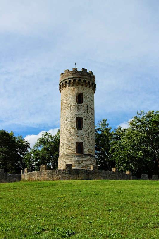 Das Turmgelände ist von einer Zinnenmauer umgeben, so dass man den Eindruck einer kleinen Burg gewinnt.